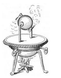 ***早的以蒸汽转化动力的机器:气转球,而在锅底加热使的水沸腾然后变成水蒸气然后由管子进入到球中,***后水蒸气会由球体的两旁喷出并使得球体转动。