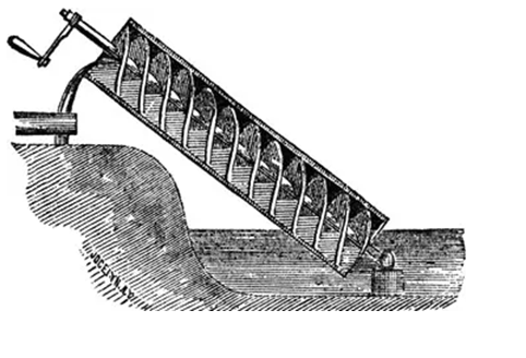 大约公元前两百年,阿基米德设计了阿基米德螺旋式抽水机,它被用于讲水从低处移向高处,进行灌溉。