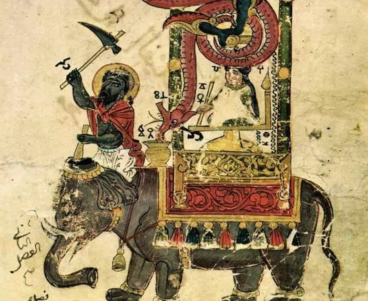 阿拉伯伊斯兰学者,发明家,机械工程师,工匠,艺术家,数学家和天文学家加扎利(1136-1206)设计的大象钟: