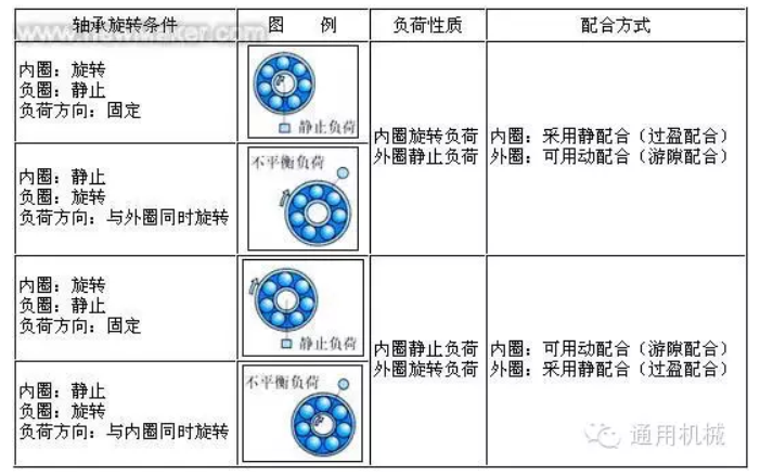 1、轴承内圈或外圈配合过松,轴承在转动过程中内圈或外圈有蠕动现象,蠕动变形会使轴承沿截面方向产生疲劳(伴随噪音产生),疲劳一定时间会产生裂纹,***终导致断裂。